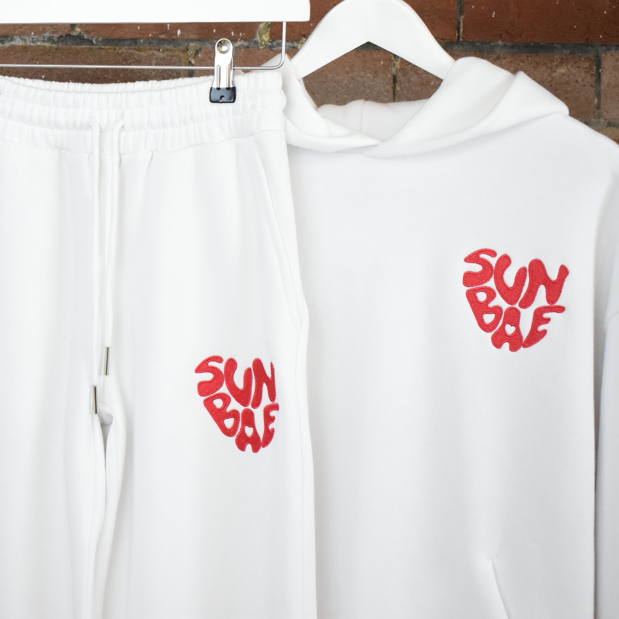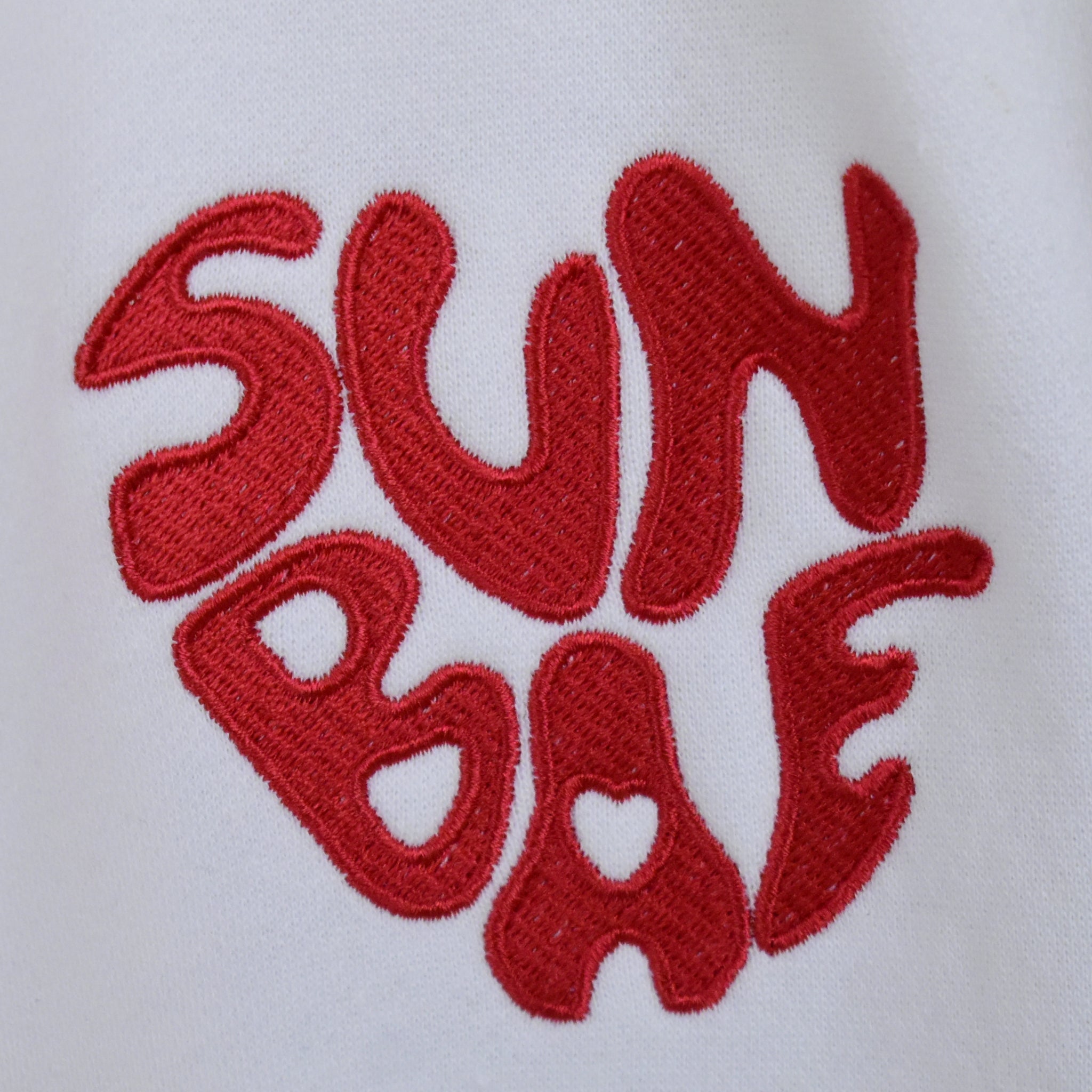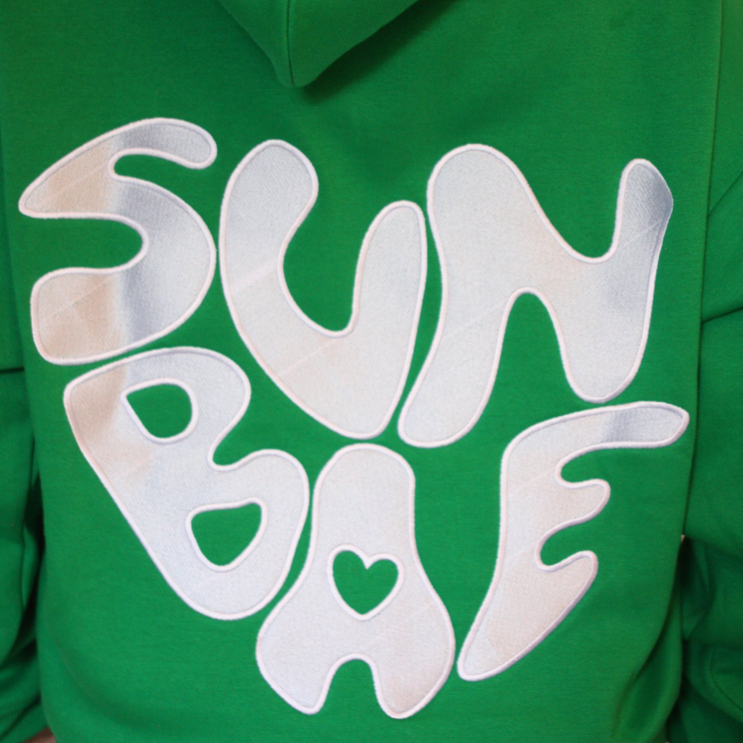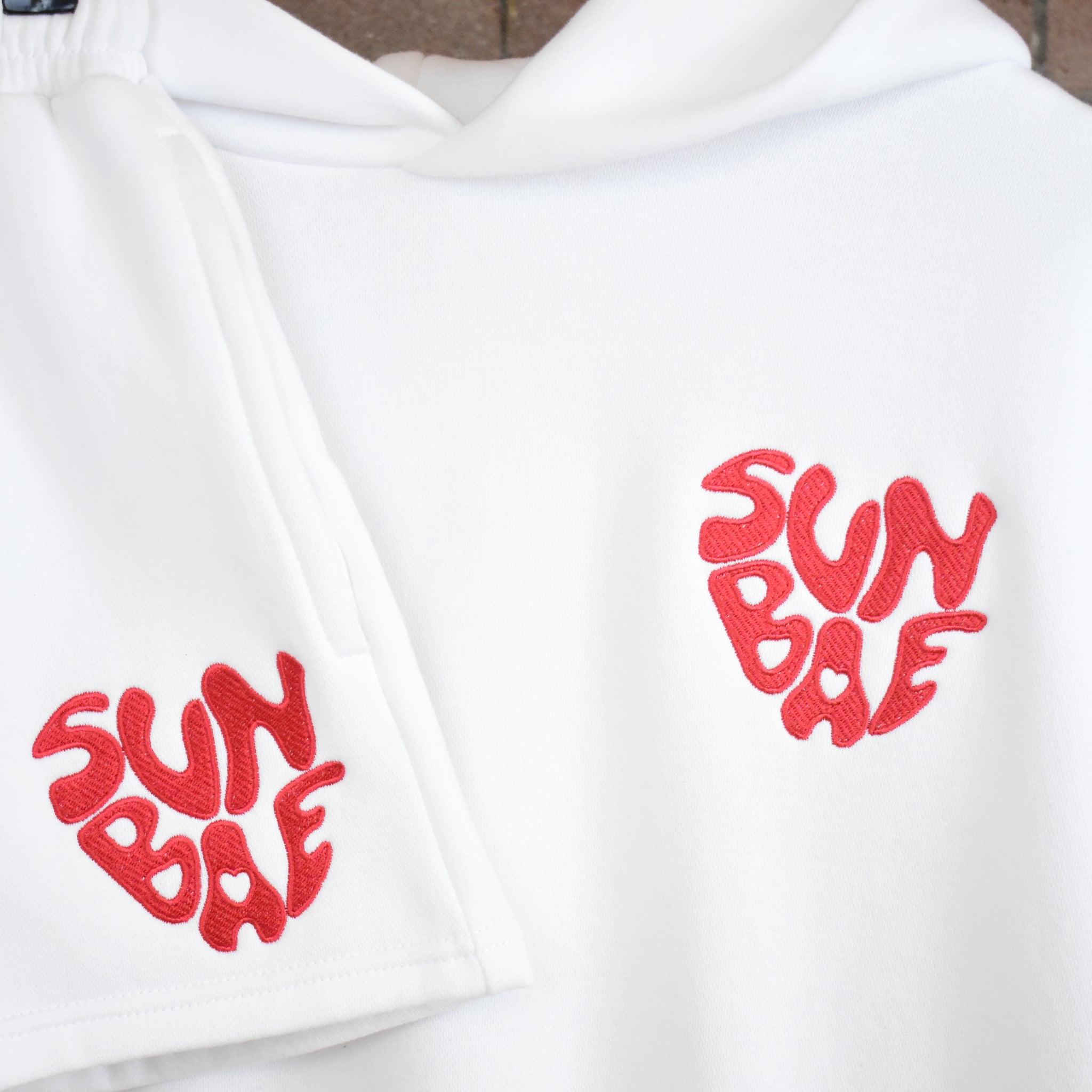 We started by building out the vibe, looking at garment shapes, colour mood boards, and vintage inspo from old-school teen brands like Ton Sur Ton and Naff Naff. We were all about those bold, playful colours with contrast embroidery, keeping it fresh but still comfy. The whole collection is built on SUNBAE’s signature oversized OFFLINE Hoodie & Shorts, which I’m obsessed with.