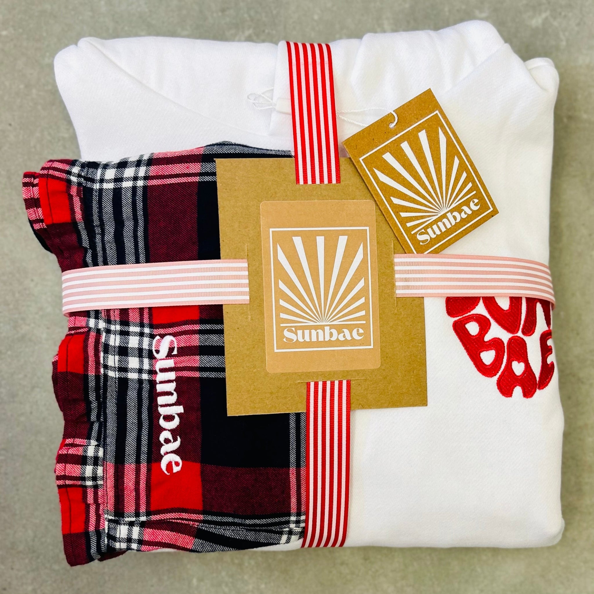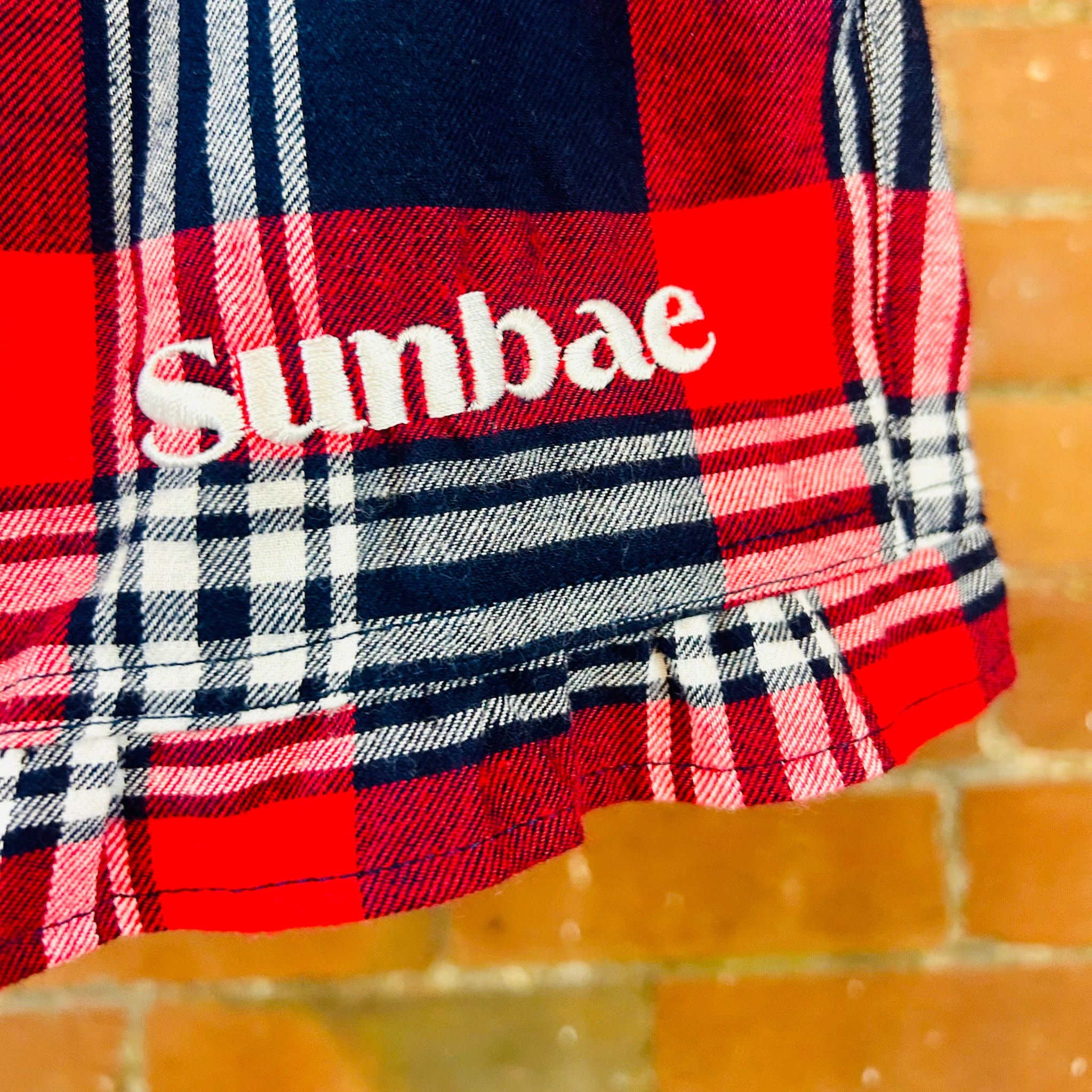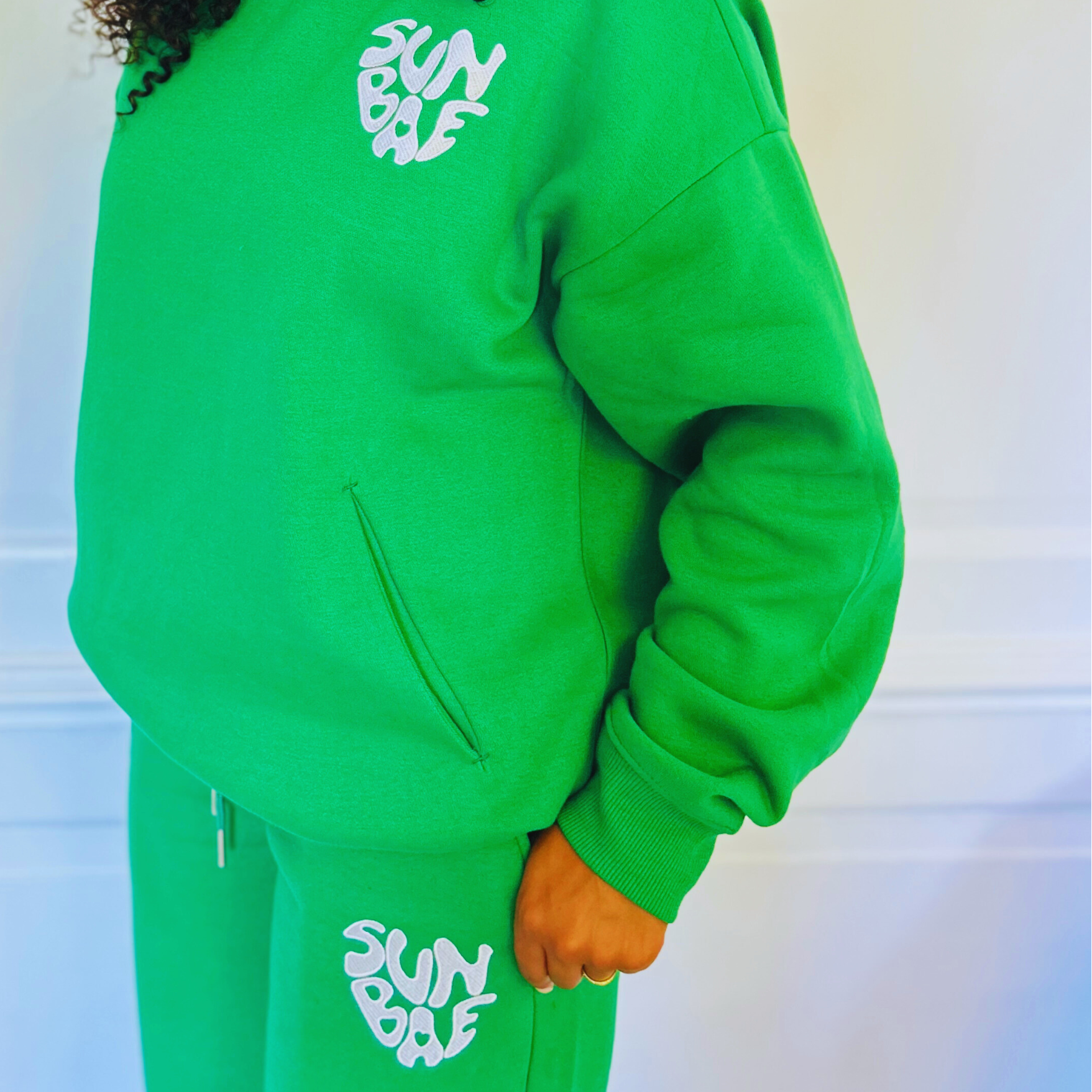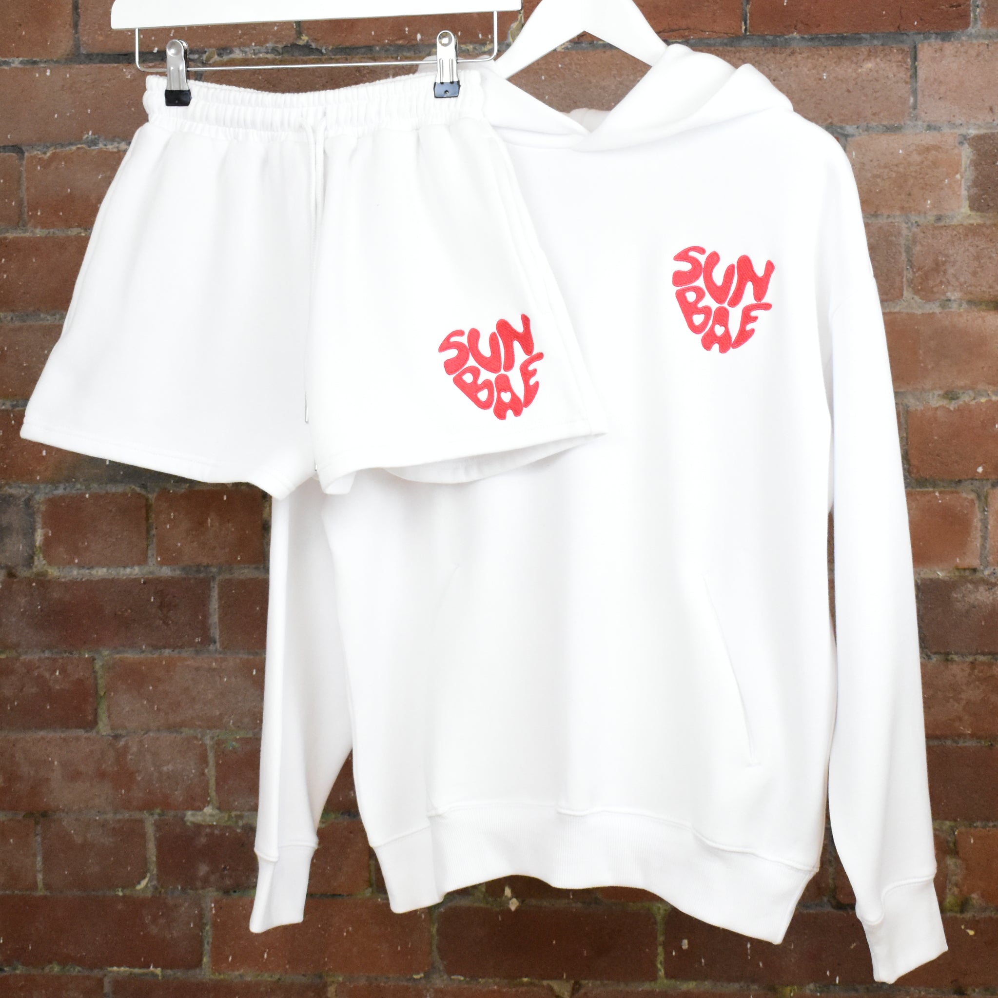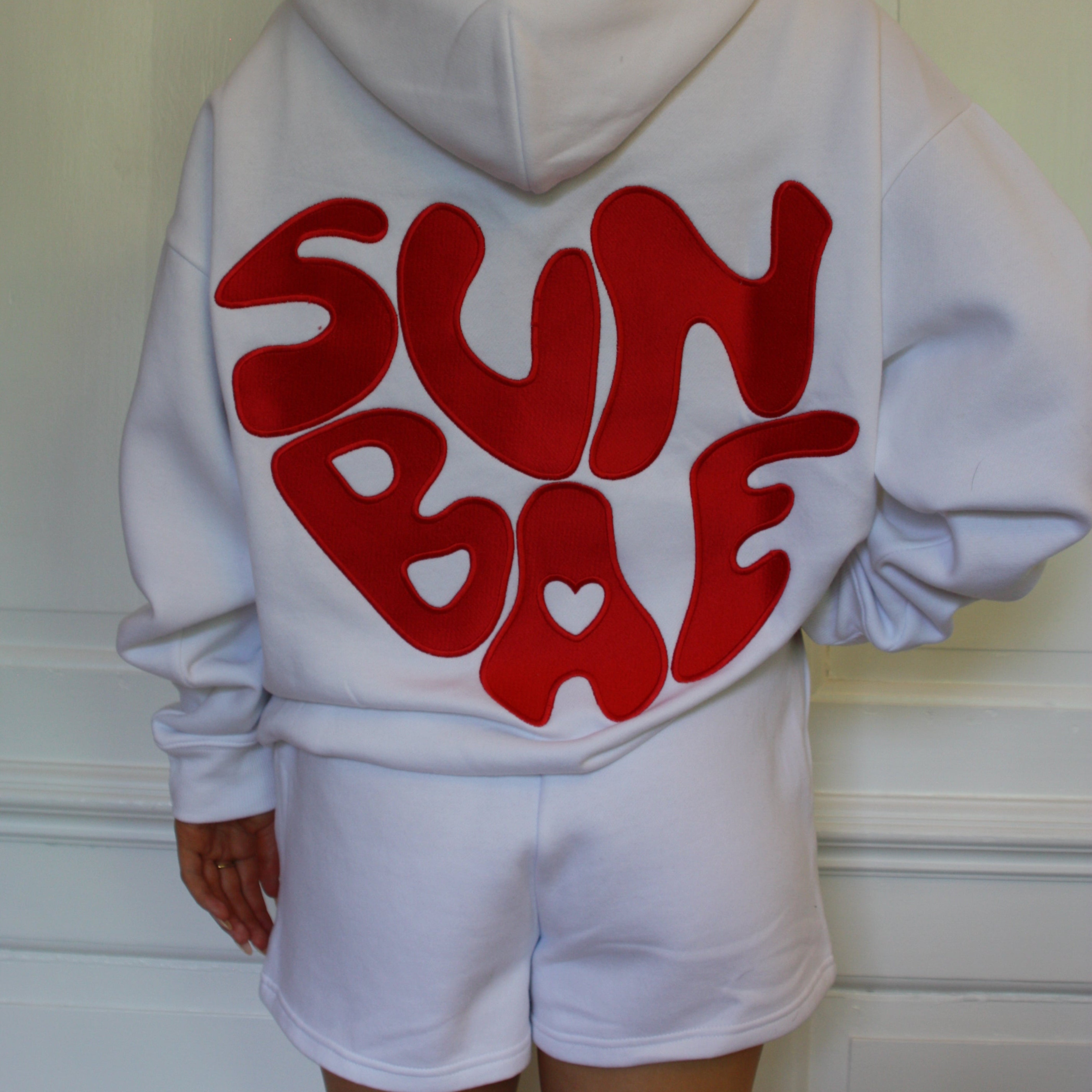 We started by building out the vibe, looking at garment shapes, colour mood boards, and vintage inspo from old-school teen brands like Ton Sur Ton and Naff Naff. We were all about those bold, playful colours with contrast embroidery, keeping it fresh but still comfy. The whole collection is built on SUNBAE’s signature oversized OFFLINE Hoodie & Shorts, which I’m obsessed with.