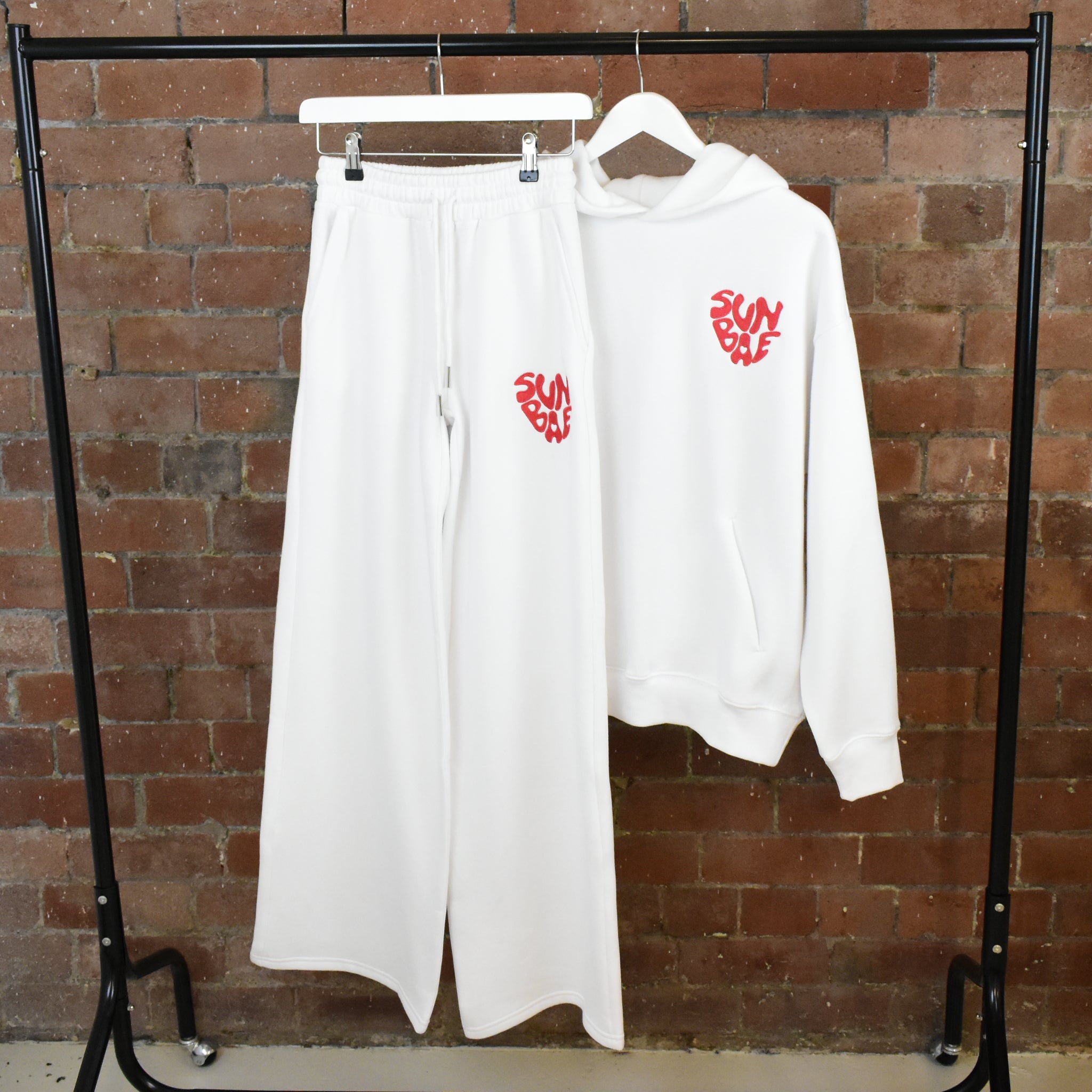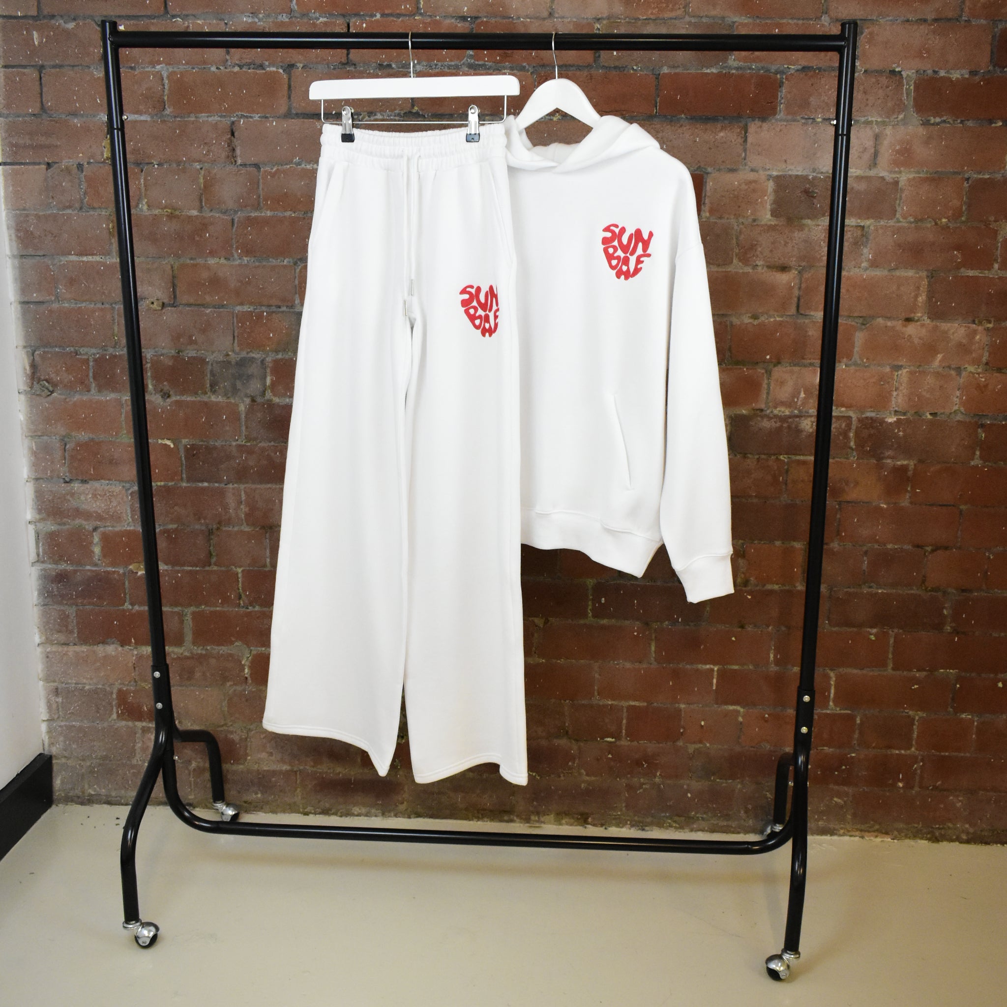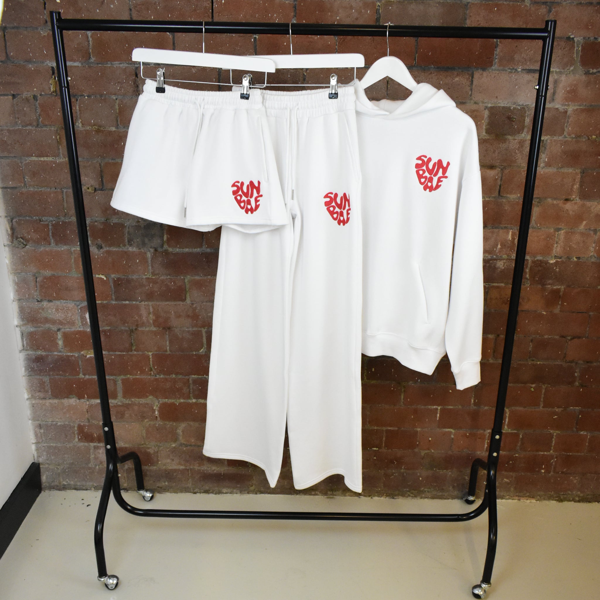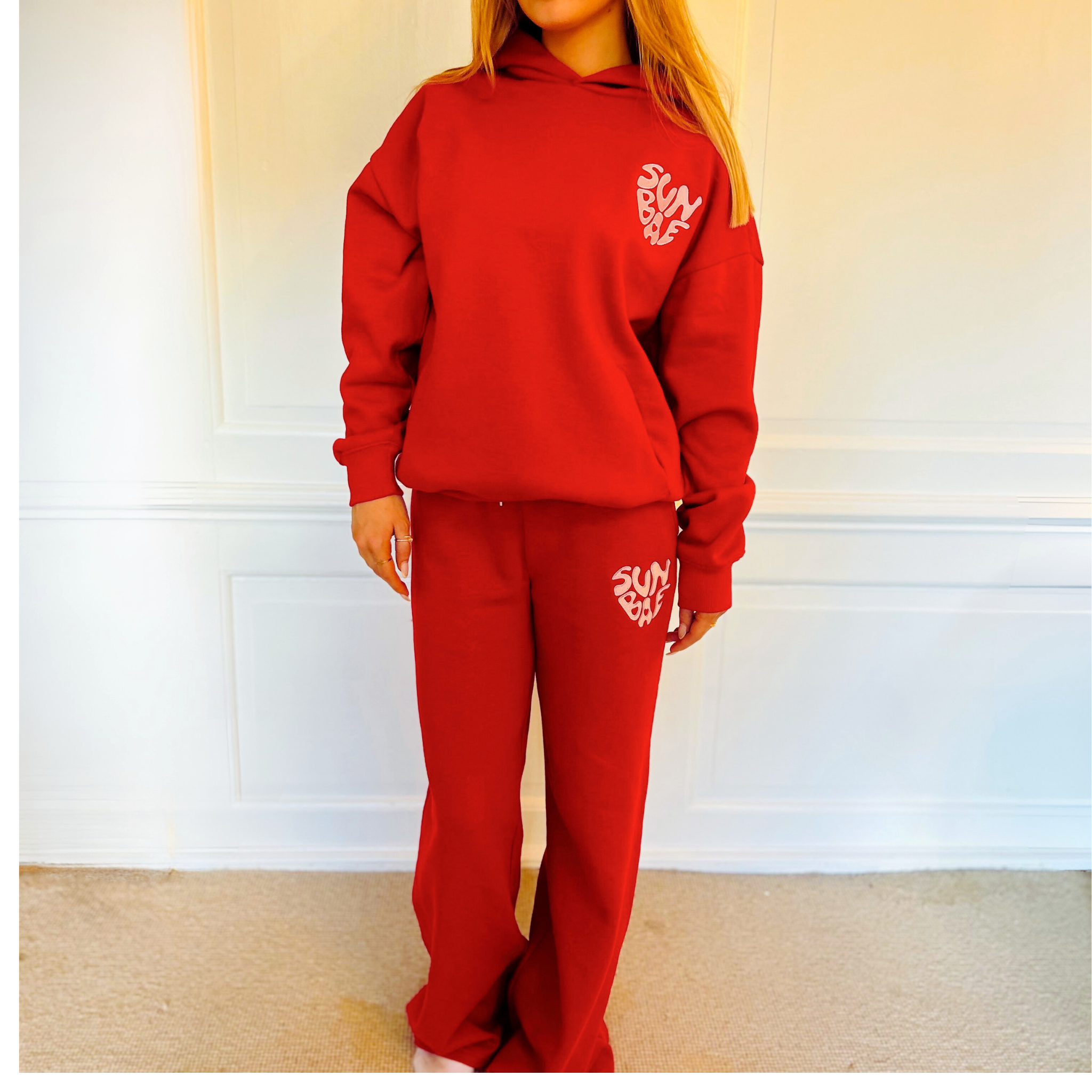 One of my favourite combos we worked on was poppy red with bright pink embroidery, it just pops. We also wanted something that could take you into autumn, so we added a matching Wide Leg Sweat Pant... that’s now known as the GLOW Sweat Pant, and it's seriously a vibe.